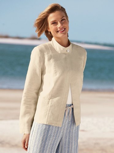 | Access the most advanced RSS tools and use them to your advantage. | 2013-04-08 10:58:01.453604-04 Category: Women Blazers and Jackets  Product Description : Our Shoreline Linen swing jacket is unlined for maximum comfort on warm summer days. The easy swing-style jacket can be worn open or closed with the shell button at the neck. Stand collar, front welt pockets, and princess seams for shape. Summer linen swing jacket in oatmeal. Pure linen. Washable. Imported. Sizes: S(6-8), M(10-12), L(14-16), XL(18-20); about 22" long. Find out more |